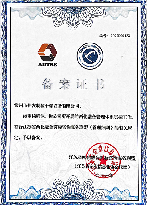 兩化融合備案證書