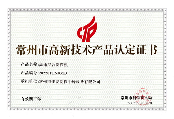 高新技術產(chǎn)品認定證書