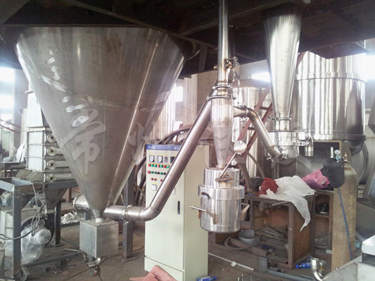 The machine is fully enclosed in color, with all components made of stainless steel and equipped with a three-pole purification device. The filtered air meets the requirement of 100000 levels. The simplified and top parts are equipped with a cold wall device to ensure a wall temperature of<80 degrees Celsius. The drying tower is equipped with an air brush scanning device. After being dried by this machine, the traditional Chinese medicine extract powder will not undergo coking and deterioration, greatly reducing the powder collection rate (up to 95% or more), and will not produce mixing or wall sticking phenomena.